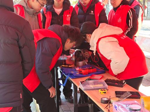 活动伊始,志愿者们悬挂起醒目标语,布置好维修工具,在服务点热情迎接前来咨询的社区居民。家电维修区域内,志愿者们逐一登记电器信息,认真检测故障原因,现场修复常见问题;对于暂时无法处理的电器,也耐心向居民说明情况并提供后续建议。维修完成后,志愿者还对电器进行安全复检,确保使用无忧。反诈宣传区同样气氛活跃,志愿者们分组发放宣传册,结合养老诈骗、网络购物诈骗等高发案例,为不同年龄段的居民讲解防骗知识,并设立咨询台解答疑问,帮助居民提升识别与防范诈骗的能力。